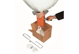 - die Polsterteile verhaken sich nach dem Einschütten untereinander und fixieren die verpackten Teile sicher in ihrer Position. Dabei spielen die äußere Form und Größe sowie Gewicht des Packgutes keine Rolle. Die Umverpackung sollte entsprechend dimensioniert sein. Mit dieser Methode können auch mehrere unterschiedliche Teile in einem Behälter erschütterungssicher verpackt werden.